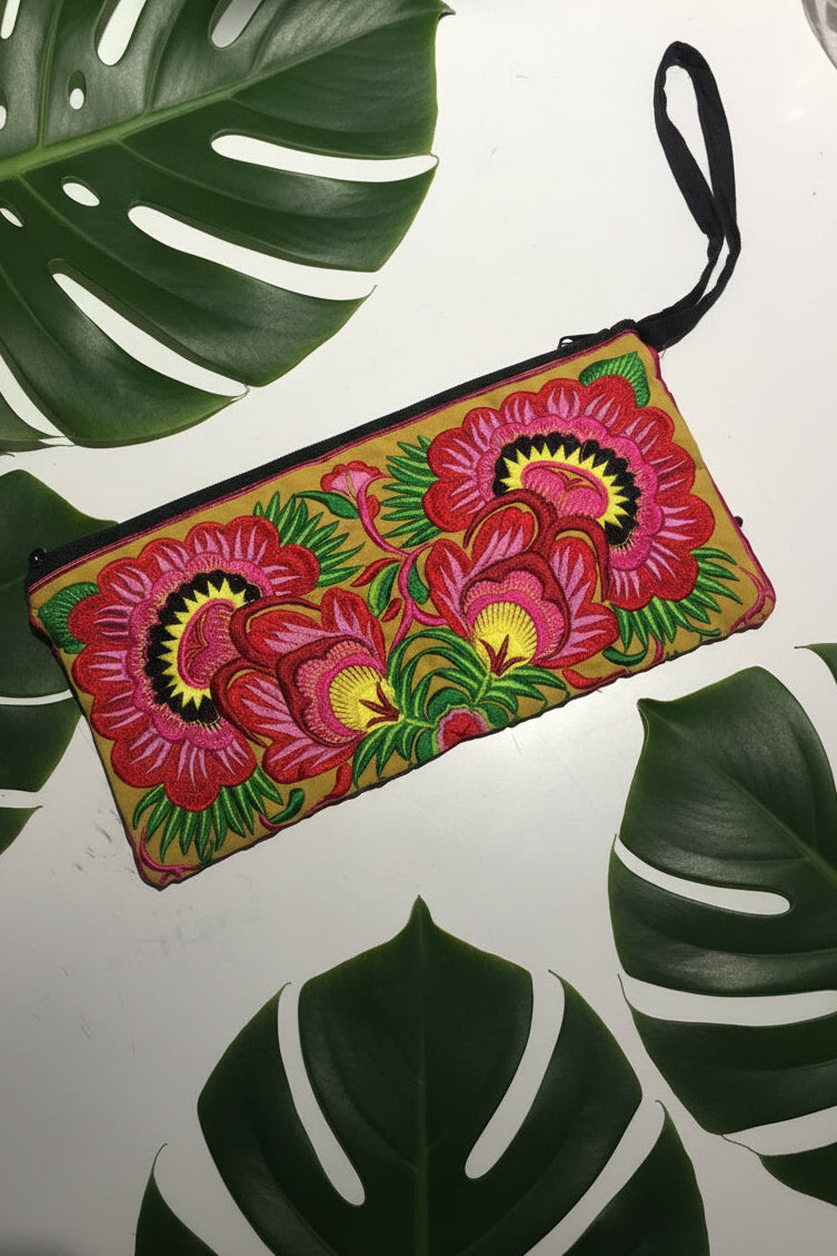 Add a pop of colour to any outfit with this beautifully embroidered clutch, featuring vibrant patterns and stunning stitchwork that make every piece feel special. Compact, practical, and full of personality, it’s the perfect grab-and-go accessory for day or night.